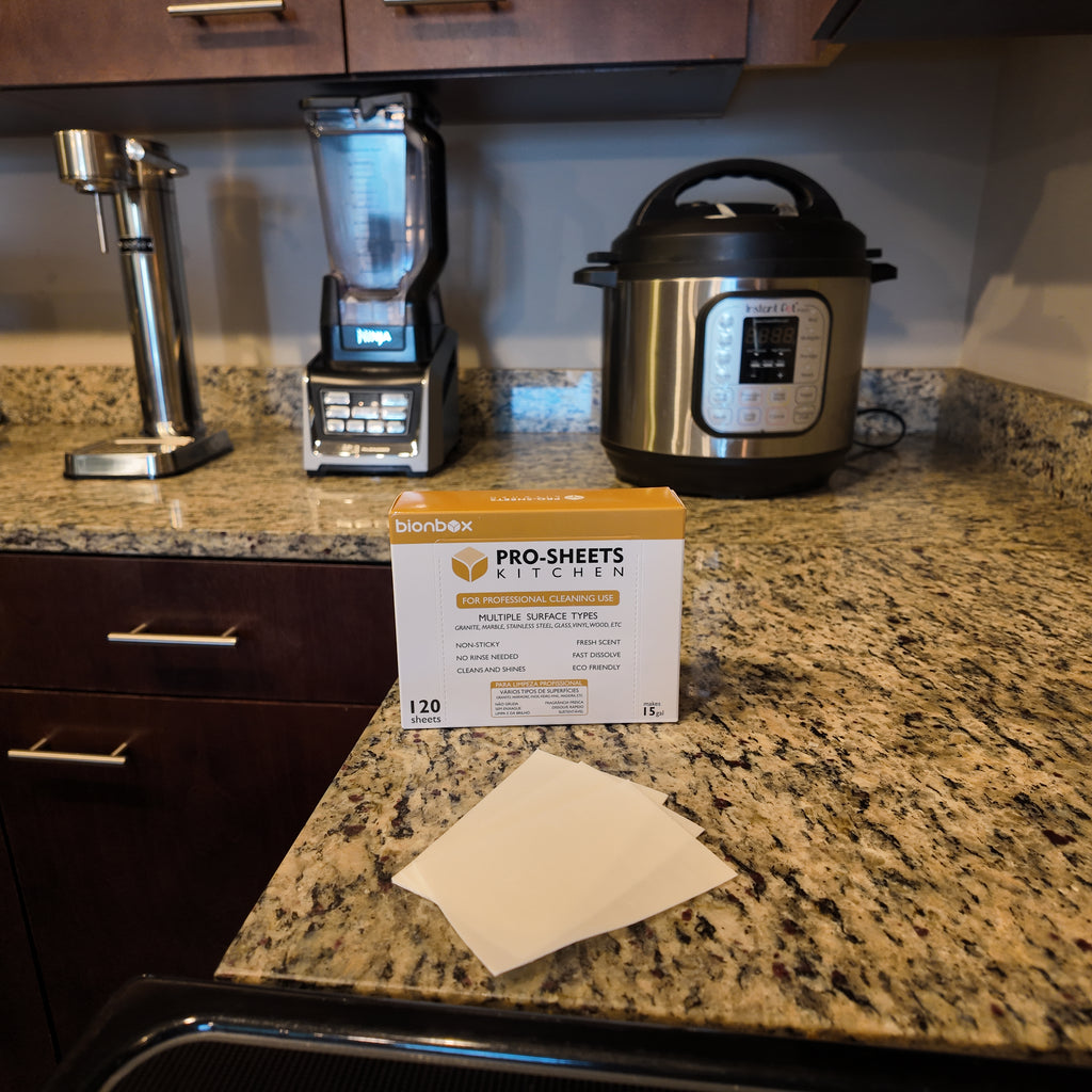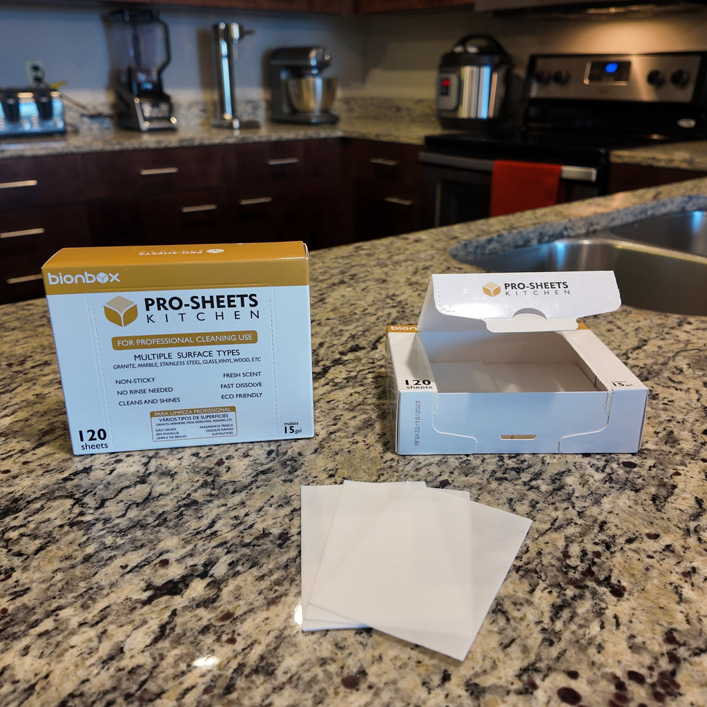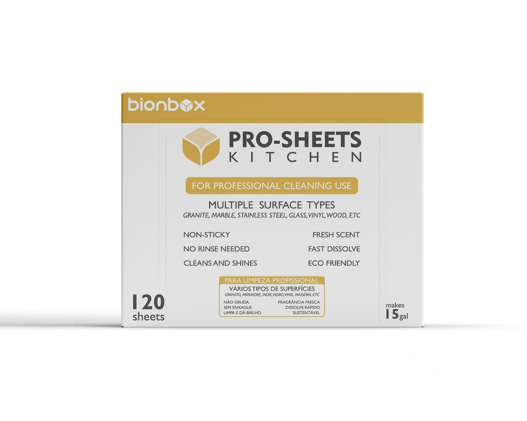 Revolutionize your kitchen cleaning with Bionbox Pro-Sheet Kitchen. Compact yet powerful, these dissolvable sheets transform into a high-performance cleaning solution that tackles grease, grime, and everyday messes—leaving your kitchen surfaces spotless, streak-free, and hygienically fresh.